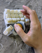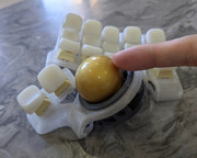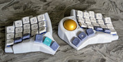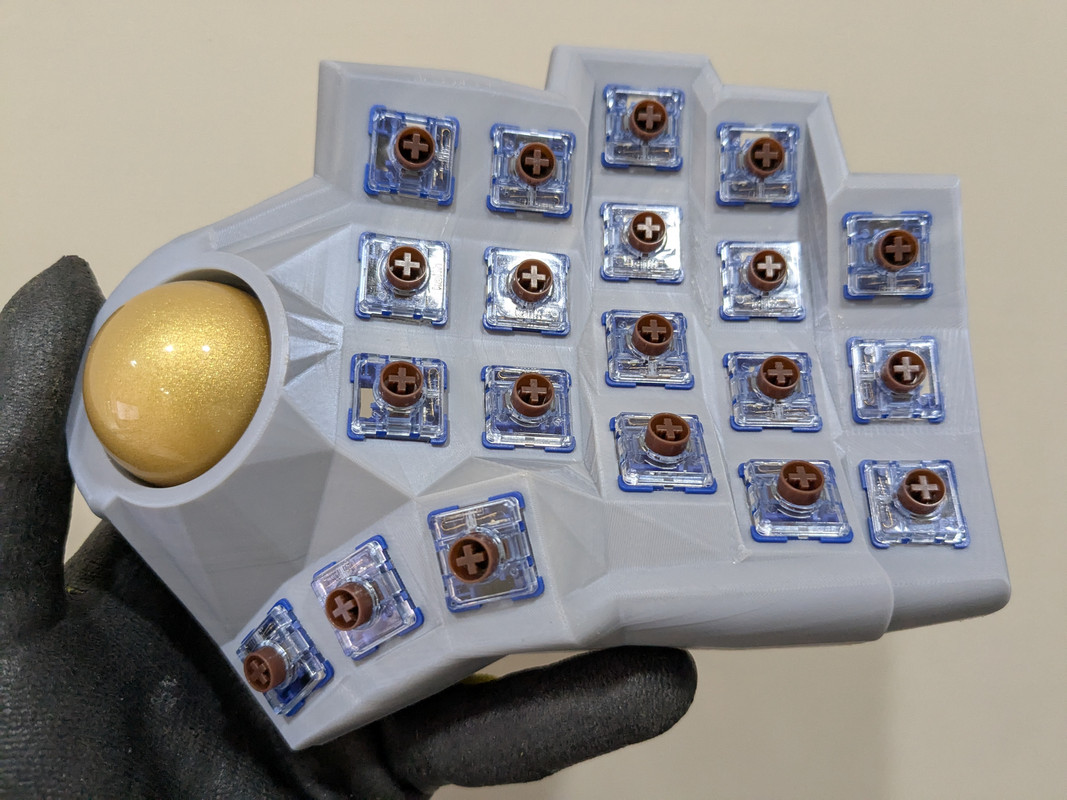結果3D列印出來上鍵軸鍵帽試打後,首先MX軸鍵程對我來說還是太長了些,整體鍵盤高度也偏高,軌跡球位置更是在掌心正下方,手掌放鬆時很容易誤觸,變成手腕要長時間懸空不能放鬆,完全無法適應。